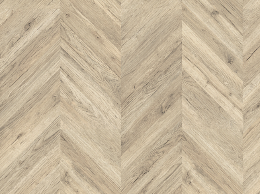 Oppgrader hjemmets uttrykk med det lyse og innbydende laminatgulvet Light Rillington Oak, som byr på et vakkert chevronmønster. Den elegante v-formede strukturen skaper en følelse av bevegelse i rommet og tilfører en moderne kant til det klassiske eiketräinspirerte designet. Overflaten er naturtro og detaljert med fine årer og knaster, som får gulvet til å fremstå autentisk og levende, samtidig som den lyse fargen gir boligen et lett og luftig preg.