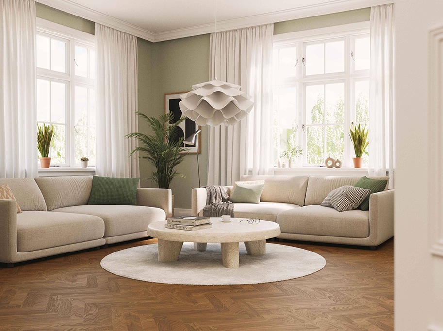 Det klassiske sildebensformatet med staver på 340 x 68 mm skaper et eksklusivt og karakterfullt uttrykk. Den brune nyansen tilfører rommet dybde og en tidløs eleganse, som passer til både moderne og klassiske innredninger.